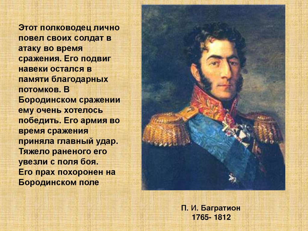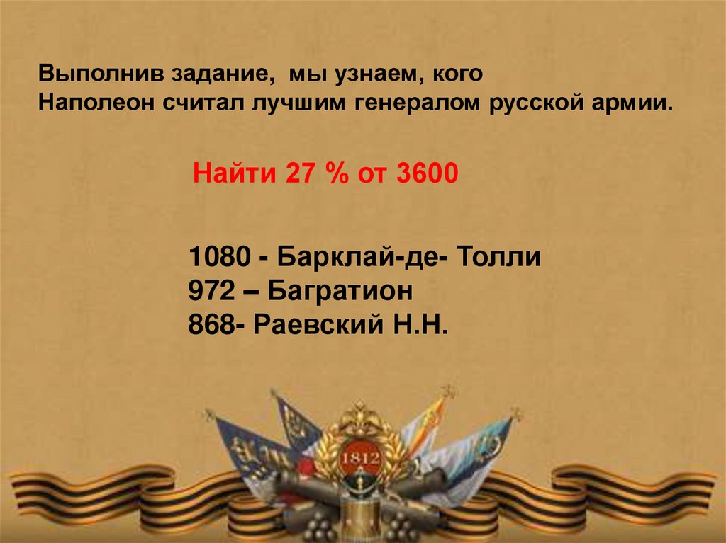 Выполнив задание, мы узнаем, когоНаполеон считал лучшим генералом русской армии.