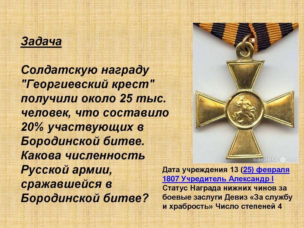 ЗадачаСолдатскую награду