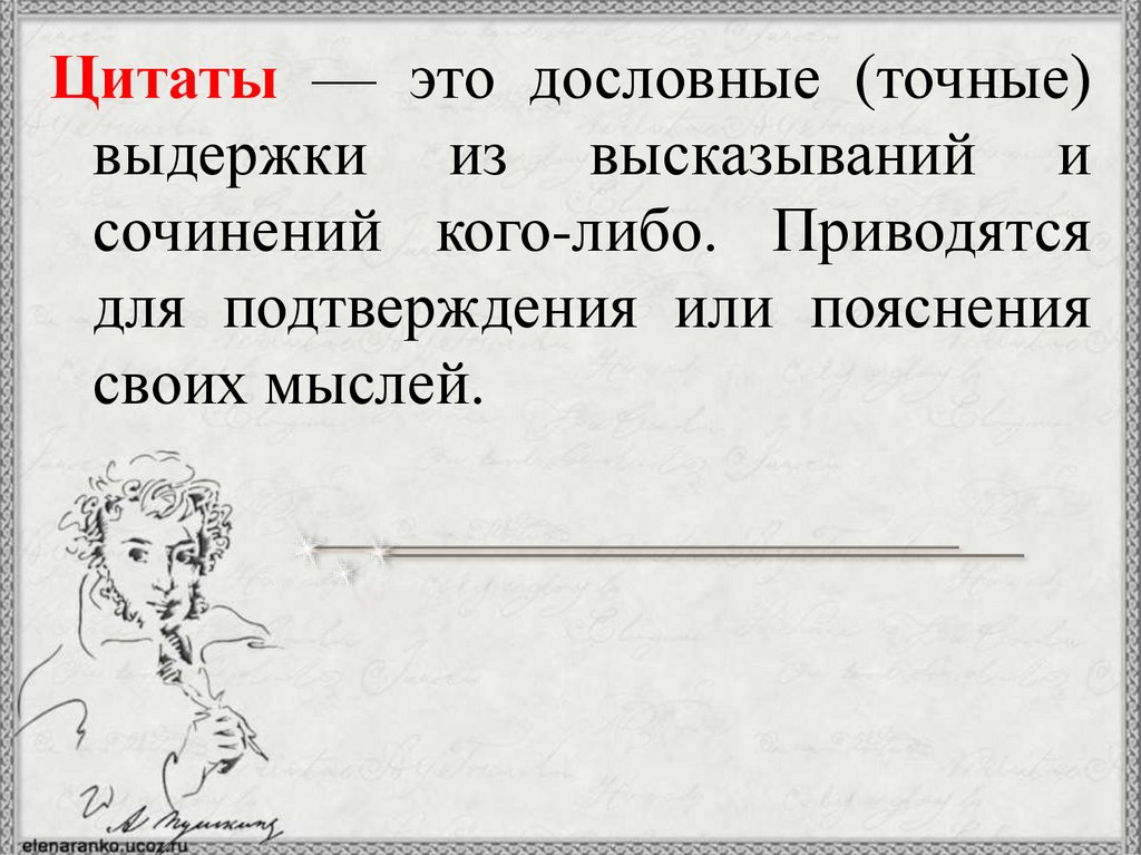 Цитаты — это дословные (точные)выдержки из высказываний и