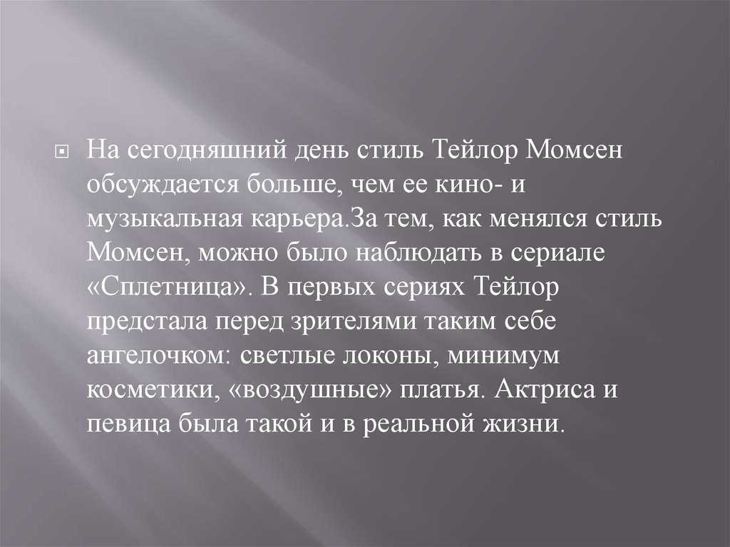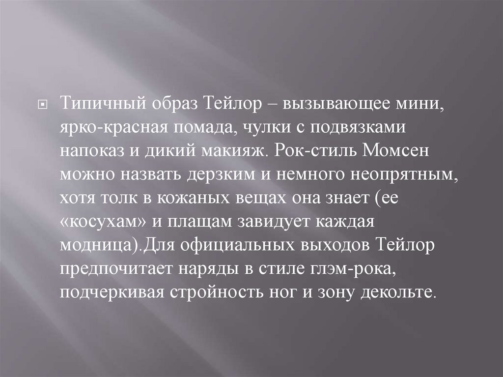 На сегодняшний день стиль Тейлор Момсенобсуждается больше, чем ее кино- и