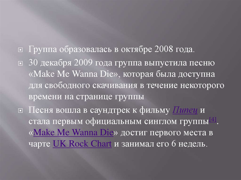 Группа образовалась в октябре 2008 года.30 декабря 2009 года группа выпустила песню