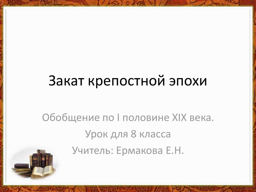 Закат крепостной эпохиОбобщение по I половине XIX века.