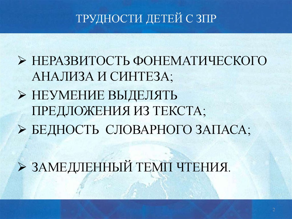 ТРУДНОСТИ ДЕТЕЙ С ЗПРНЕРАЗВИТОСТЬ ФОНЕМАТИЧЕСКОГО