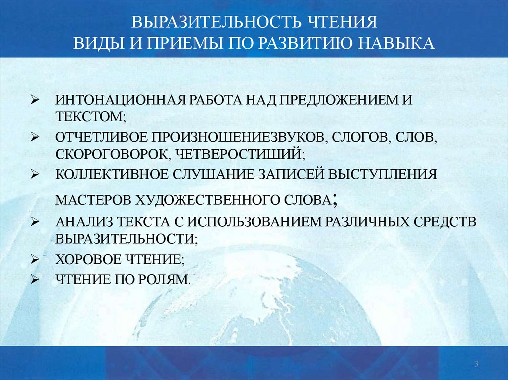ВЫРАЗИТЕЛЬНОСТЬ ЧТЕНИЯВИДЫ И ПРИЕМЫ ПО РАЗВИТИЮ НАВЫКА