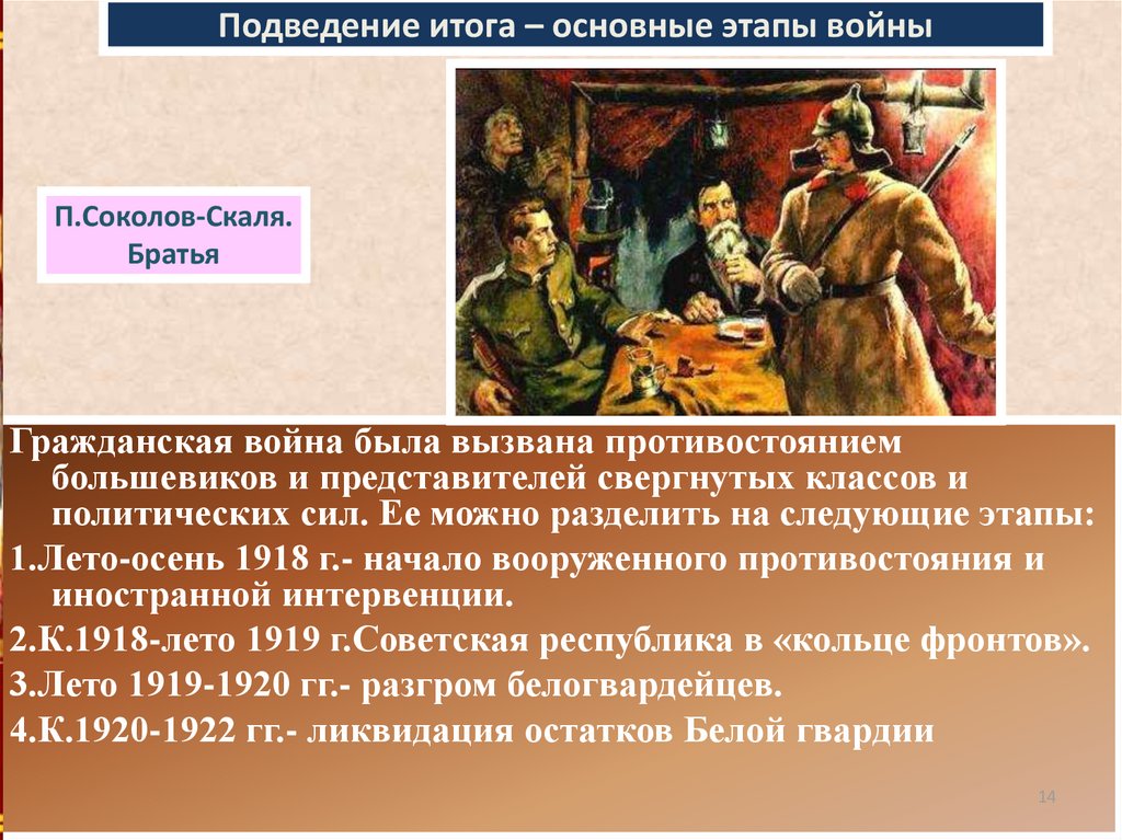 Подведение итога – основные этапы войныП.Соколов-Скаля.