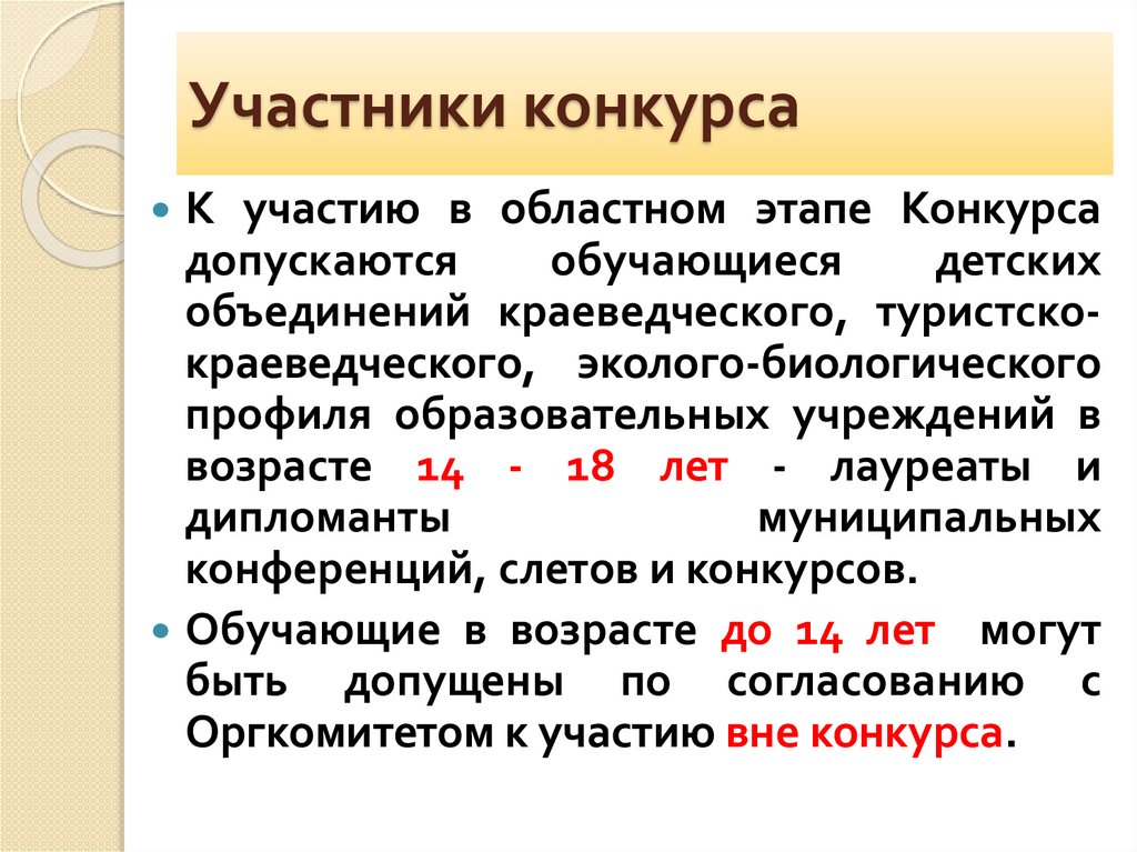 Участники конкурсаК участию в областном этапе Конкурса