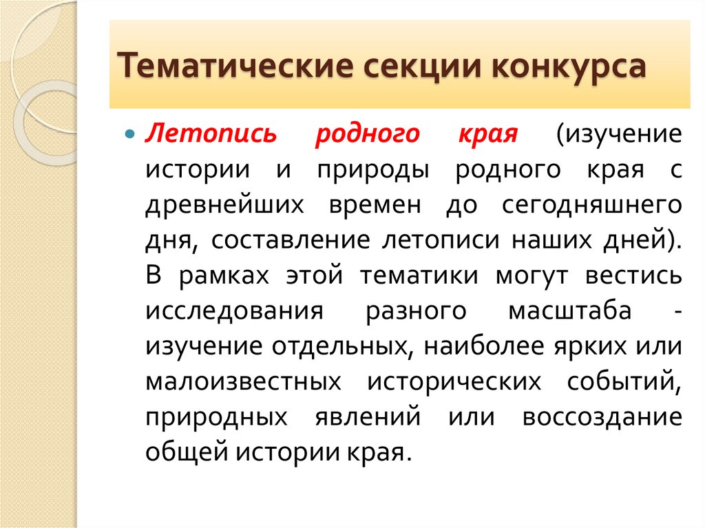 Тематические секции конкурсаЛетопись родного края (изучение