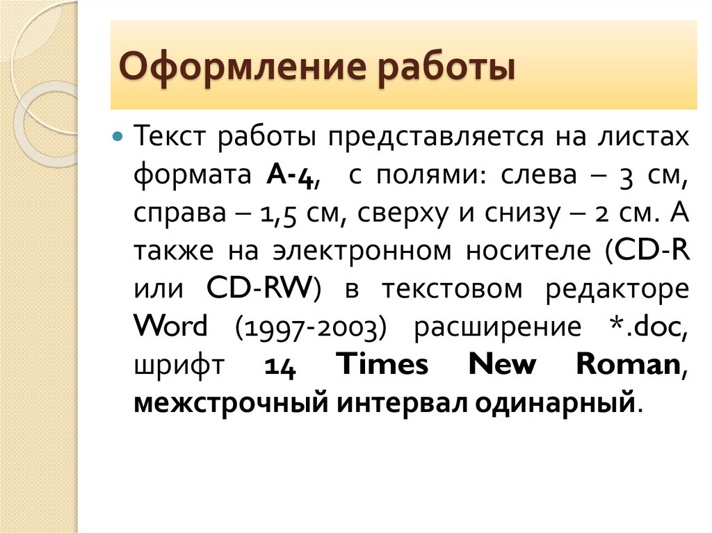 Оформление работыТекст работы представляется на листах