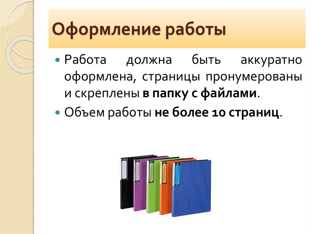 Оформление работыРабота должна быть аккуратно