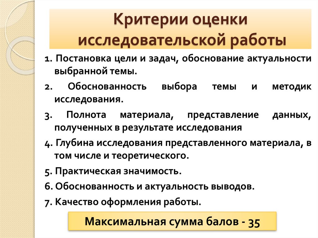 Критерии оценкиисследовательской работы