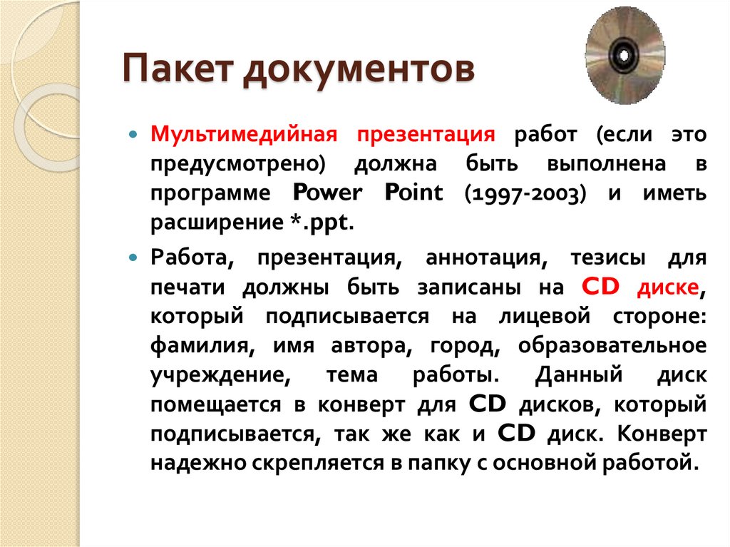 Пакет документовМультимедийная презентация работ (если это