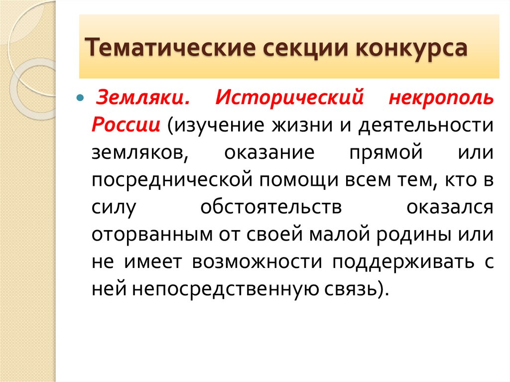 Тематические секции конкурсаЗемляки. Исторический некрополь