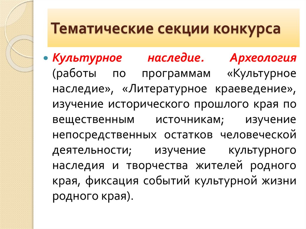 Тематические секции конкурсаКультурное