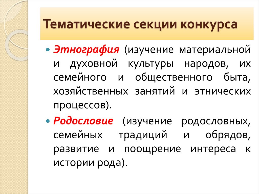 Тематические секции конкурсаЭтнография (изучение материальной