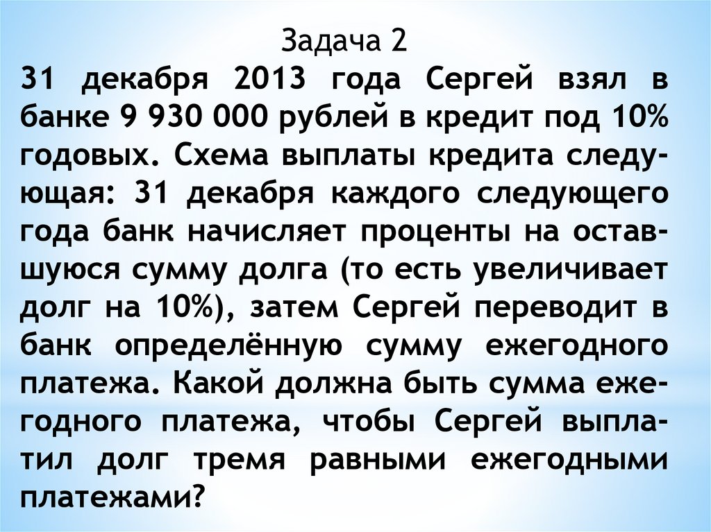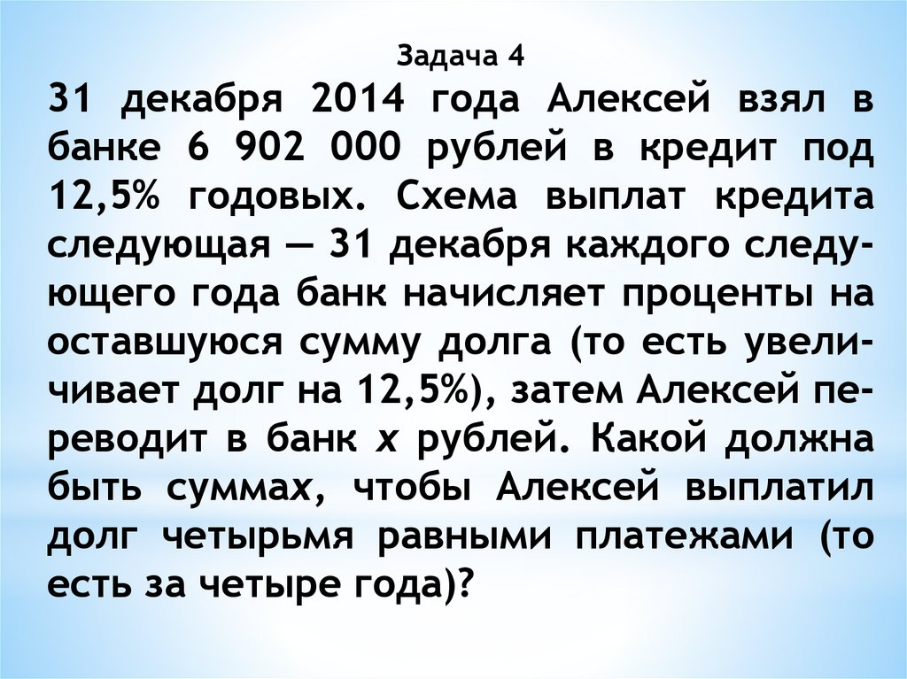 Расчет аннуитетного платежа по формуле. Задача 6.11