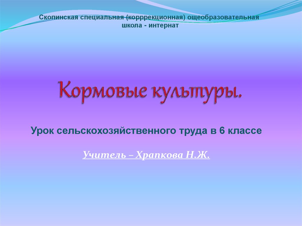 Растениеводство. Кормовые однолетние и многолетние культуры