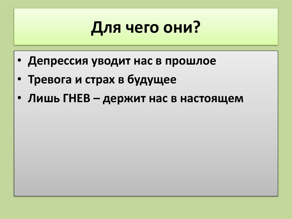 Для чего они?• Депрессия уводит нас в прошлое