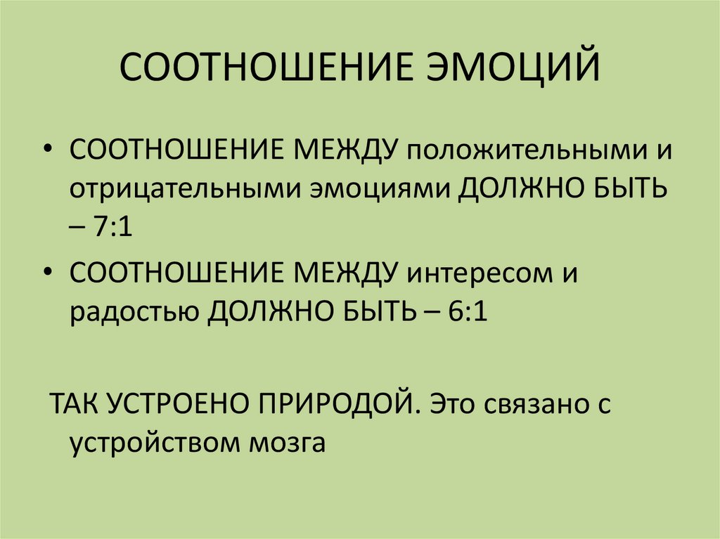 СООТНОШЕНИЕ ЭМОЦИЙ• СООТНОШЕНИЕ МЕЖДУ положительными и