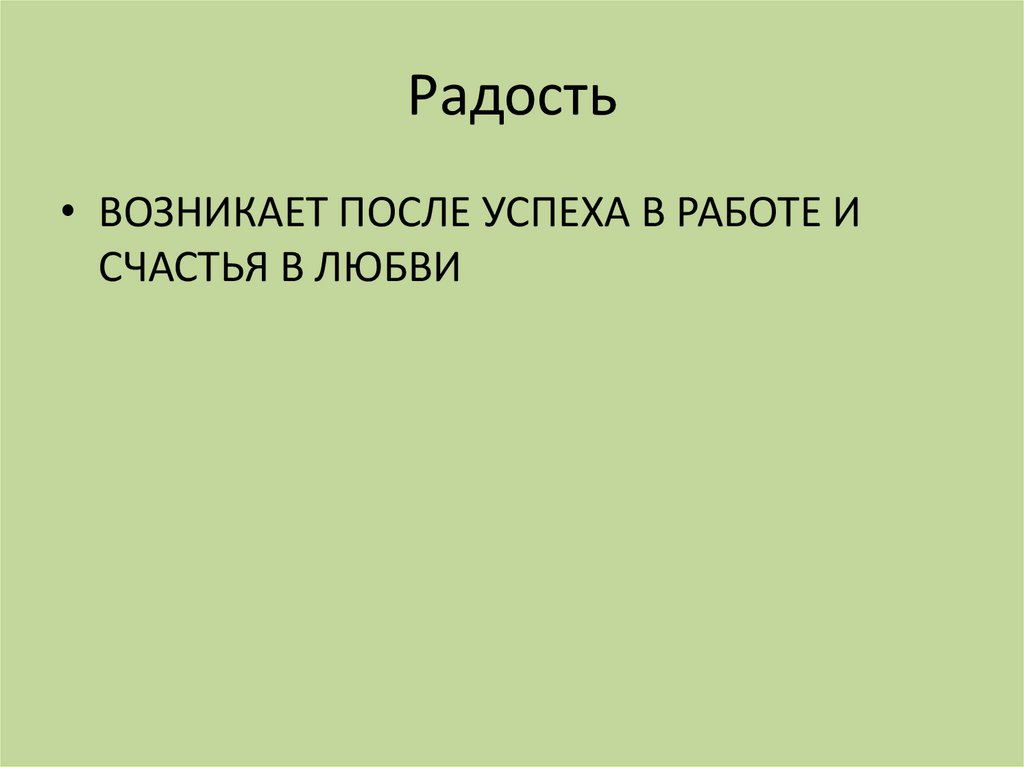 Радость• ВОЗНИКАЕТ ПОСЛЕ УСПЕХА В РАБОТЕ И