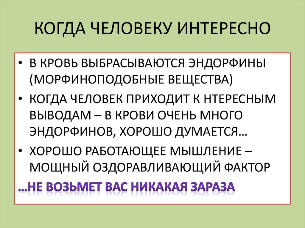 КОГДА ЧЕЛОВЕКУ ИНТЕРЕСНО• В КРОВЬ ВЫБРАСЫВАЮТСЯ ЭНДОРФИНЫ