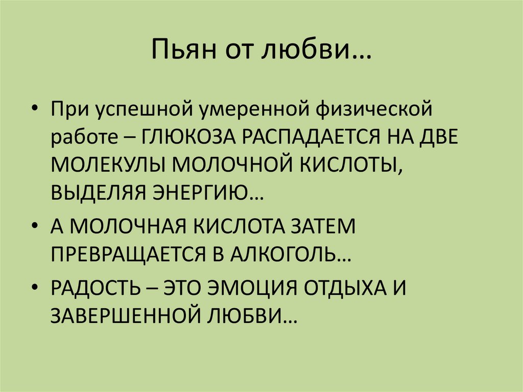 Пьян от любви…• При успешной умеренной физической