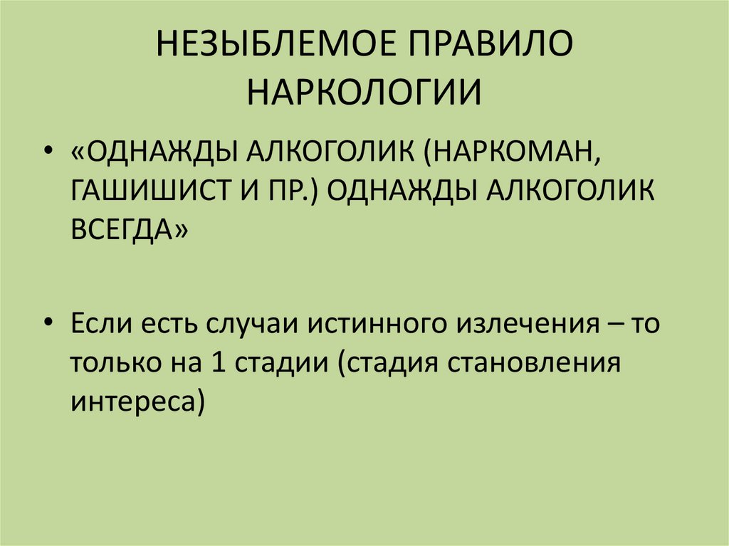 НЕЗЫБЛЕМОЕ ПРАВИЛОНАРКОЛОГИИ