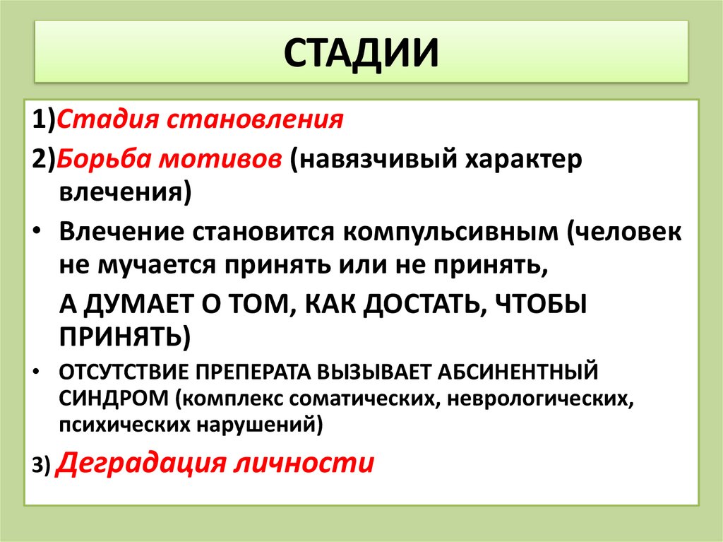 СТАДИИ1)Стадия становления