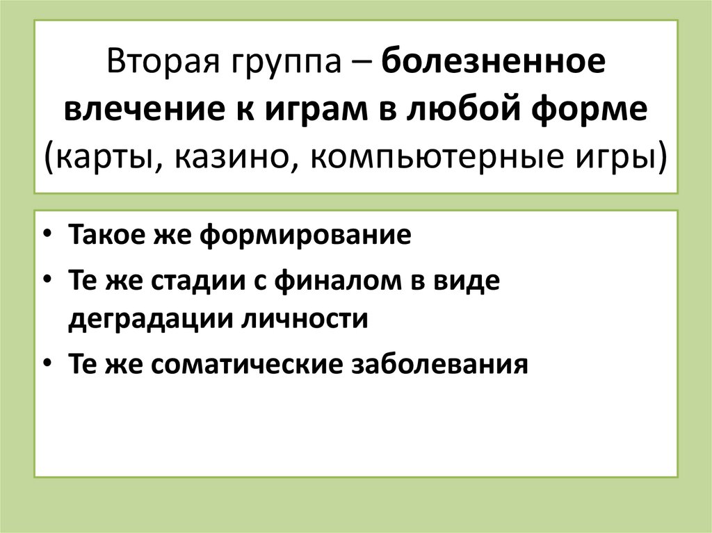 Вторая группа – болезненноевлечение к играм в любой форме