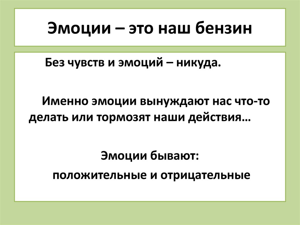 Эмоции – это наш бензинБез чувств и эмоций – никуда.