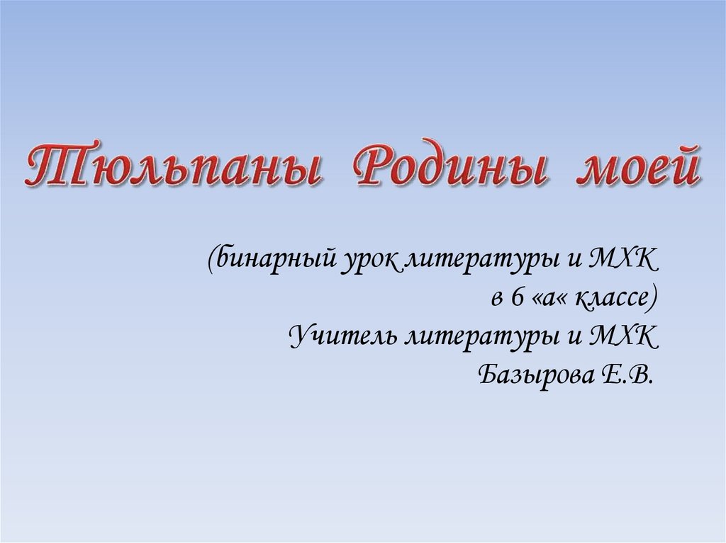 Тюльпаны Родины моей (бинарный урок литературы и МХК в 6 классе)