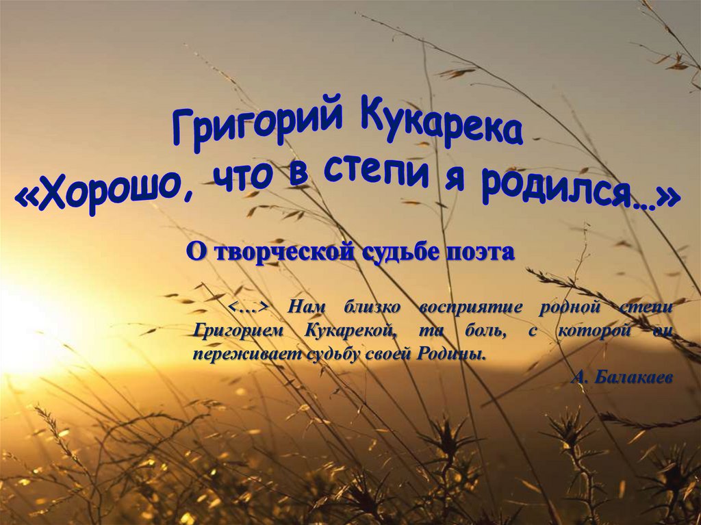 <…> Нам близко восприятие родной степиГригорием Кукарекой, та боль, с которой он