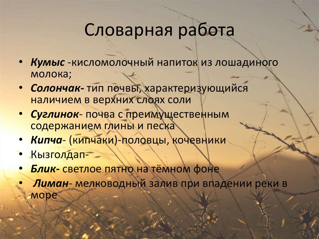 Словарная работа• Кумыс -кисломолочный напиток из лошадиного