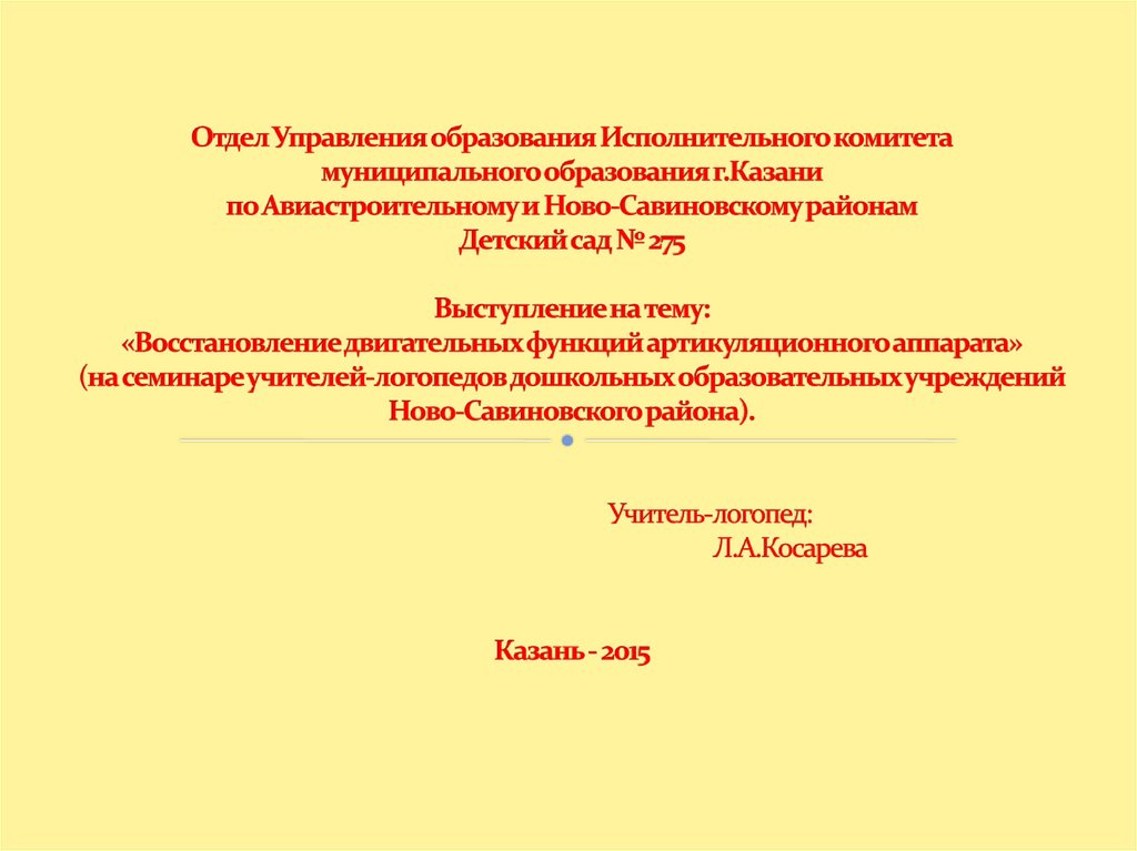 Выступление на тему "Восстановление двигательных функций артикуляционного аппарата"