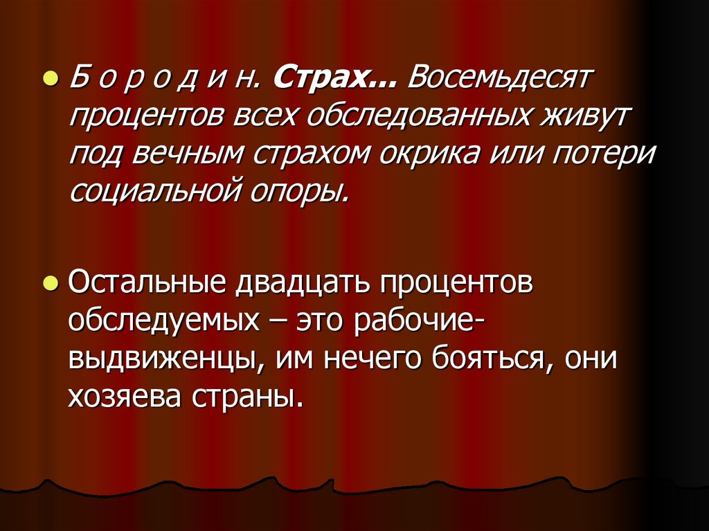 Б о р о д и н. Страх... Восемьдесятпроцентов всех обследованных живут