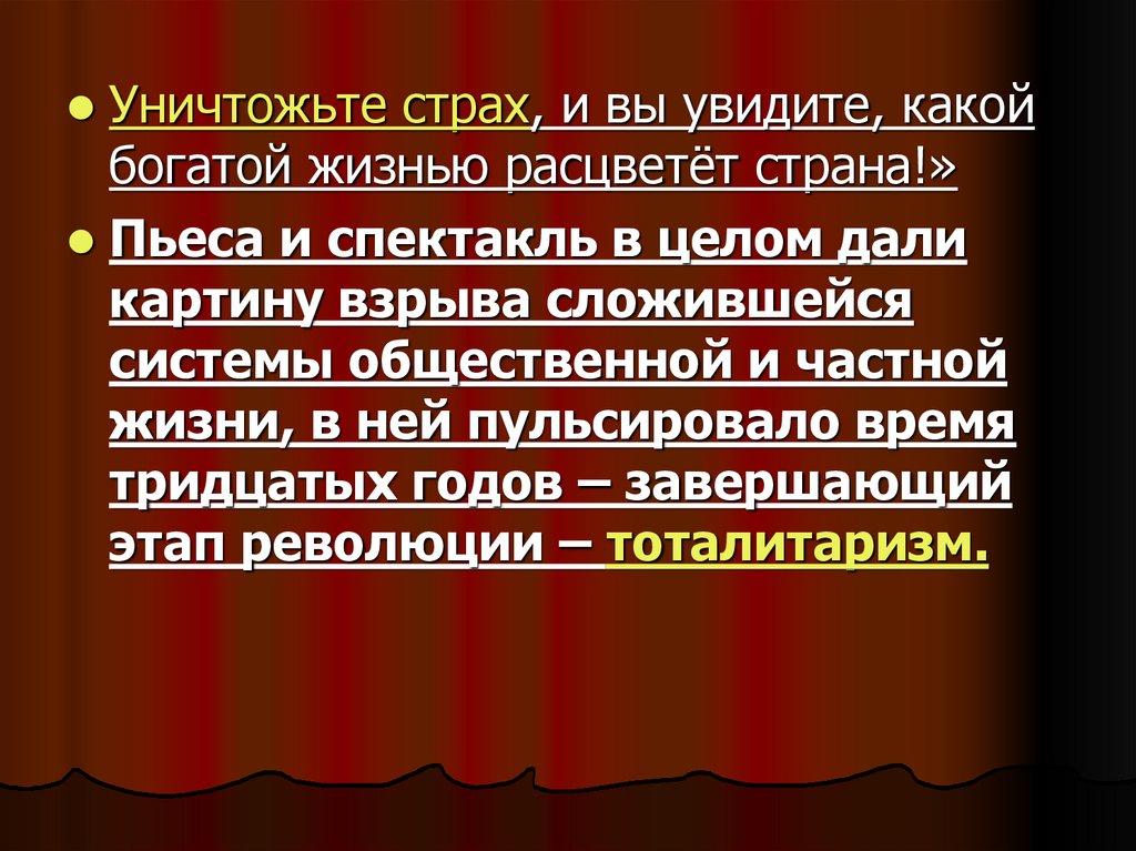 Уничтожьте страх, и вы увидите, какойбогатой жизнью расцветёт страна!»