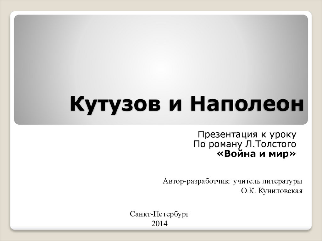 Кутузов и Наполеон (по роману Л. Толстого «Война и мир»)