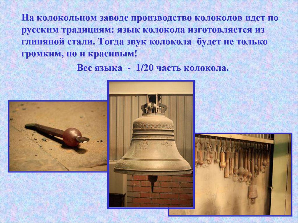 На колокольном заводе производство колоколов идет порусским традициям: язык колокола изготовляется из