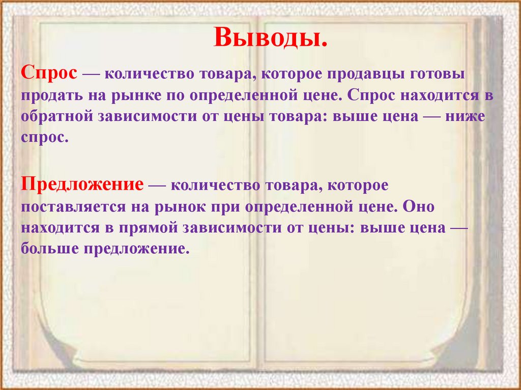 Выводы.Спрос — количество товара, которое продавцы готовы