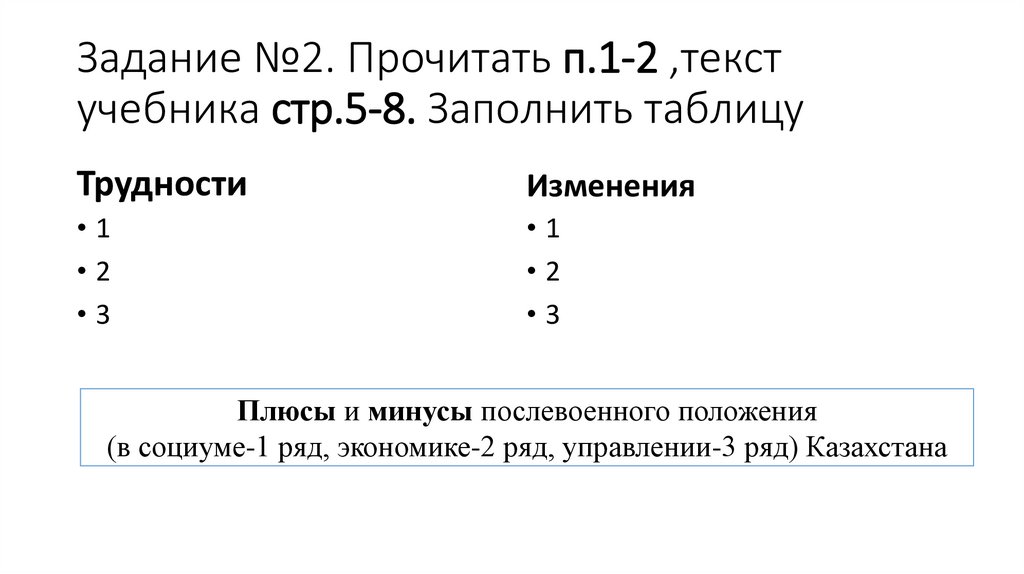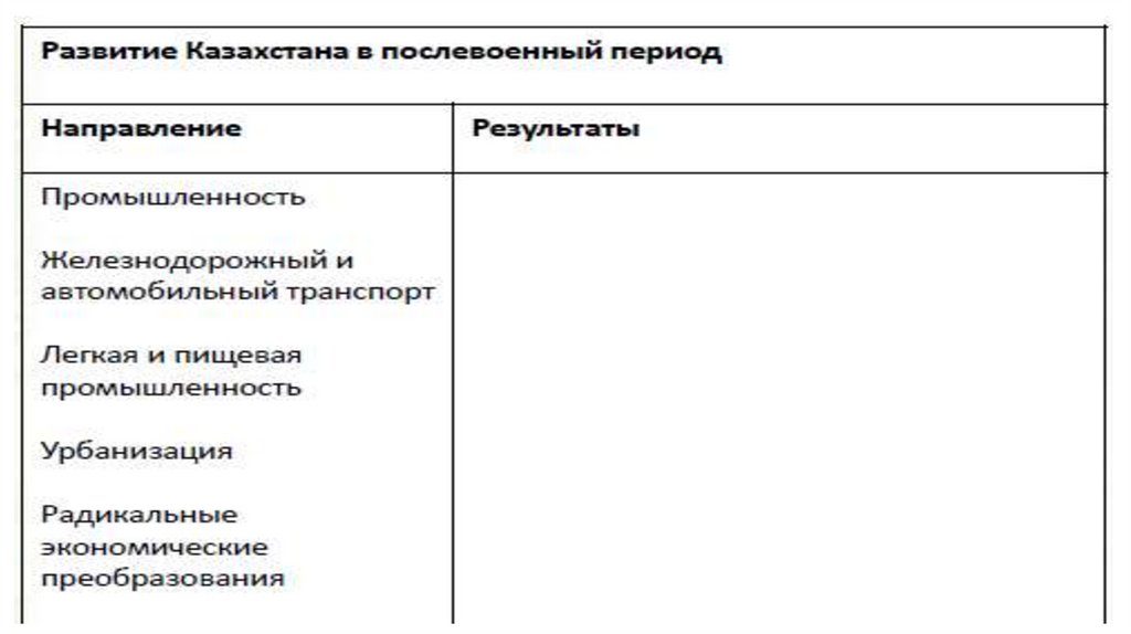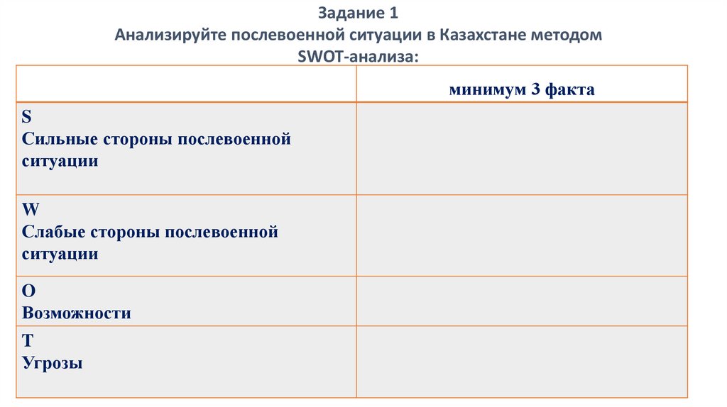 Задание 1Анализируйте послевоенной ситуации в Казахстане методом