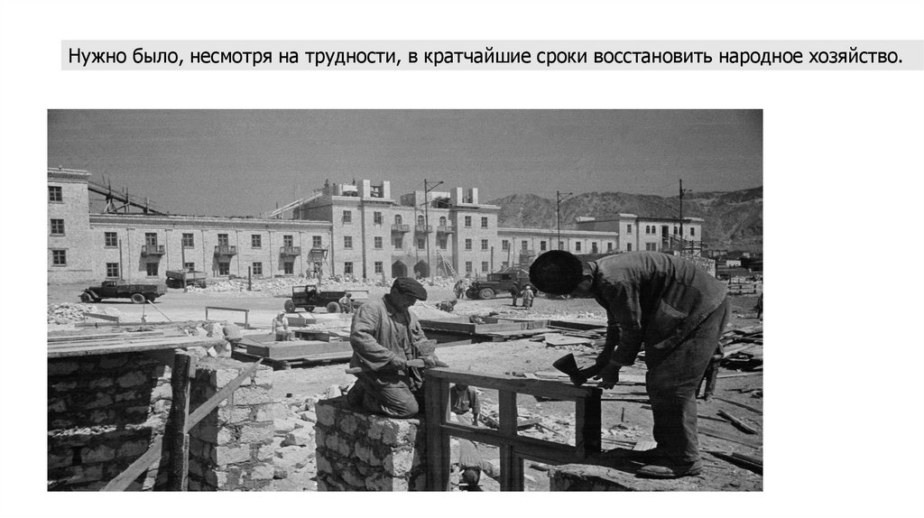 Нужно было, несмотря на трудности, в кратчайшие сроки восстановить народное хозяйство.16.