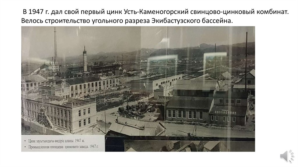 В 1947 г. дал свой первый цинк Усть-Каменогорский свинцово-цинковый комбинат.Велось строительство угольного разреза Экибастузского бассейна.
