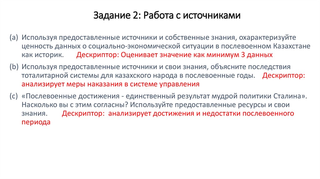 Дескриптор: анализирует достижения и недостатки послевоенного