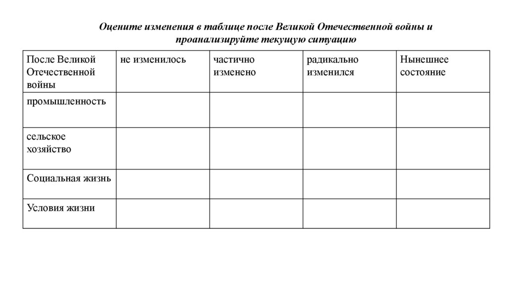 Оцените изменения в таблице после Великой Отечественной войны ипроанализируйте текущую ситуацию