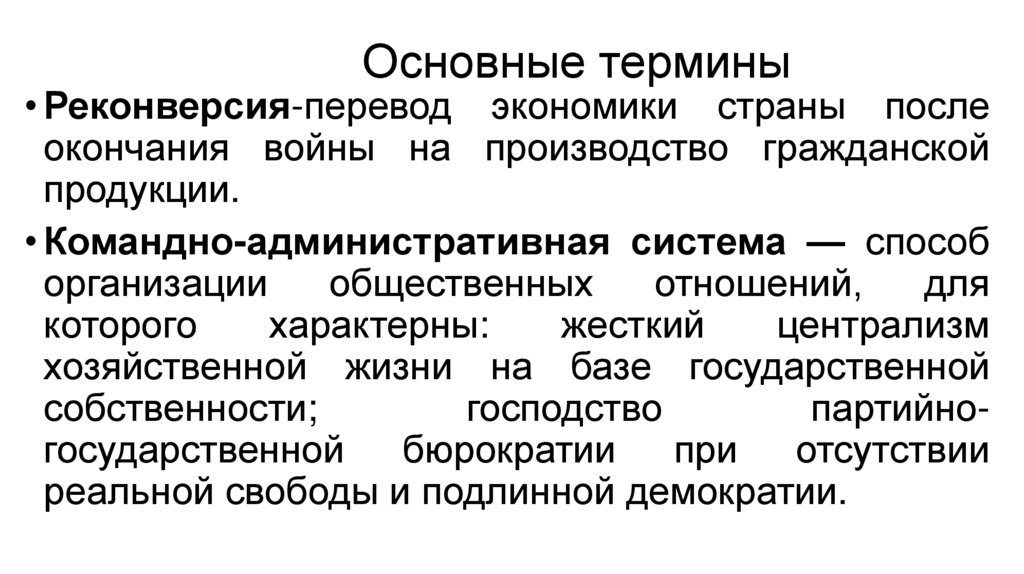 Основные термины• Реконверсия-перевод экономики страны после