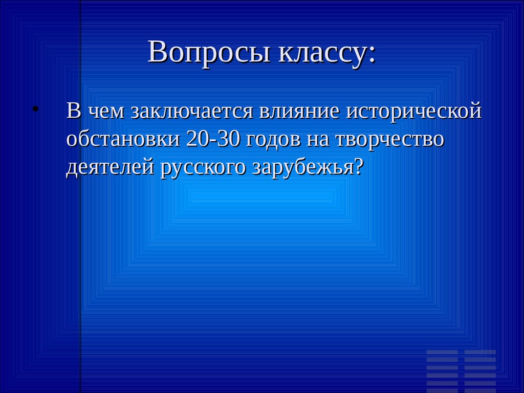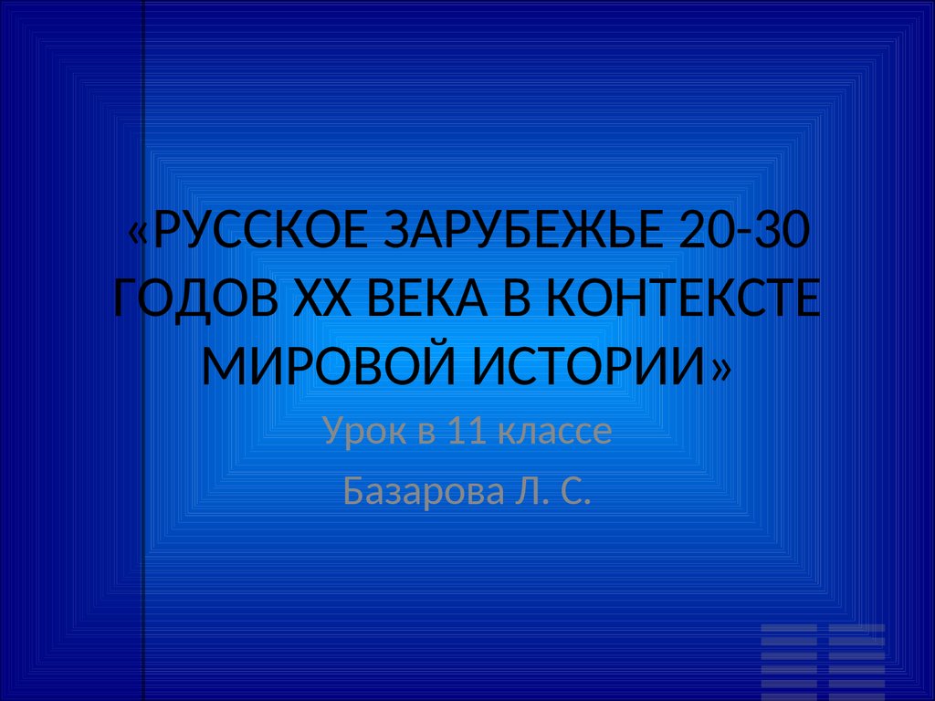 Русское зарубежье 20-30 годов ХХ века в контексте мировой истории. Урок в 11 классе