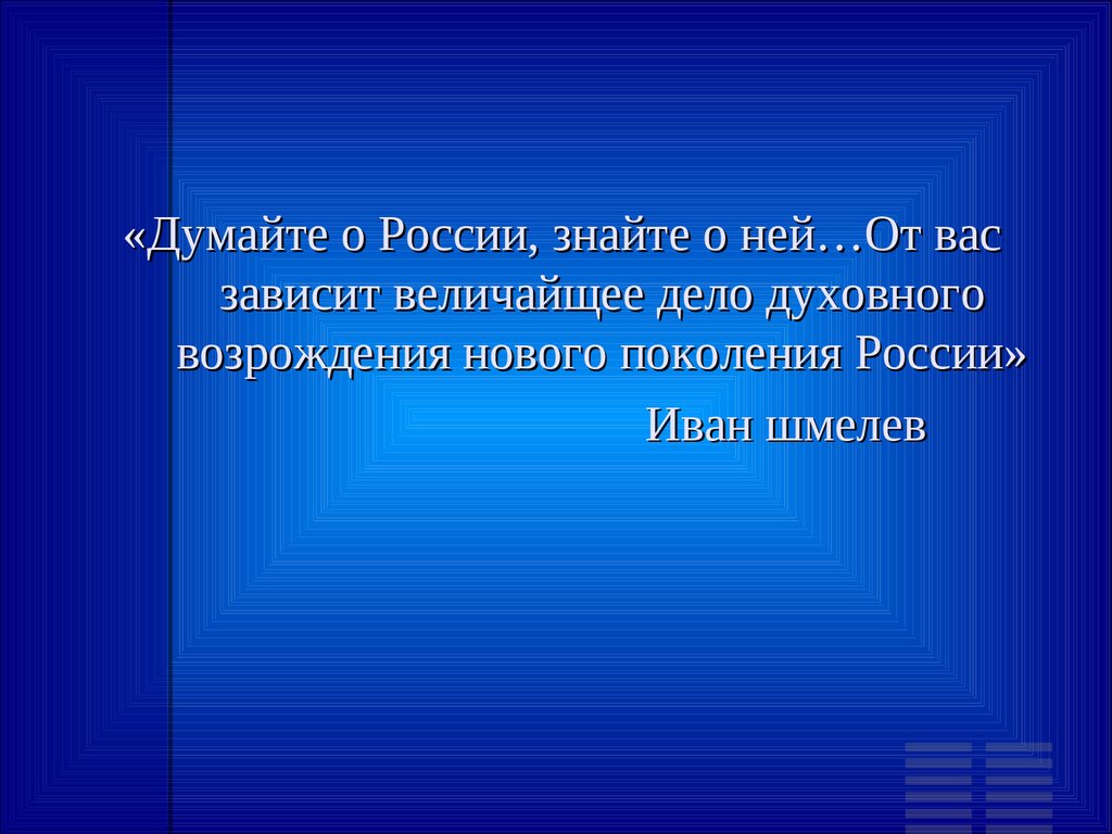«Думайте о России, знайте о ней…От васзависит величайщее дело духовного