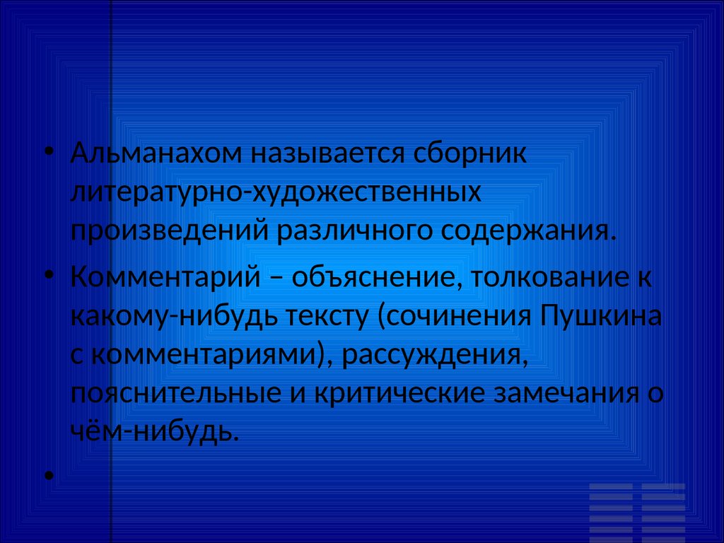 • Комментарий – объяснение, толкование к