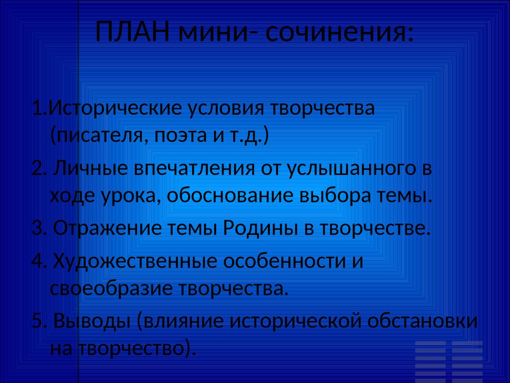 ПЛАН мини- сочинения:1.Исторические условия творчества