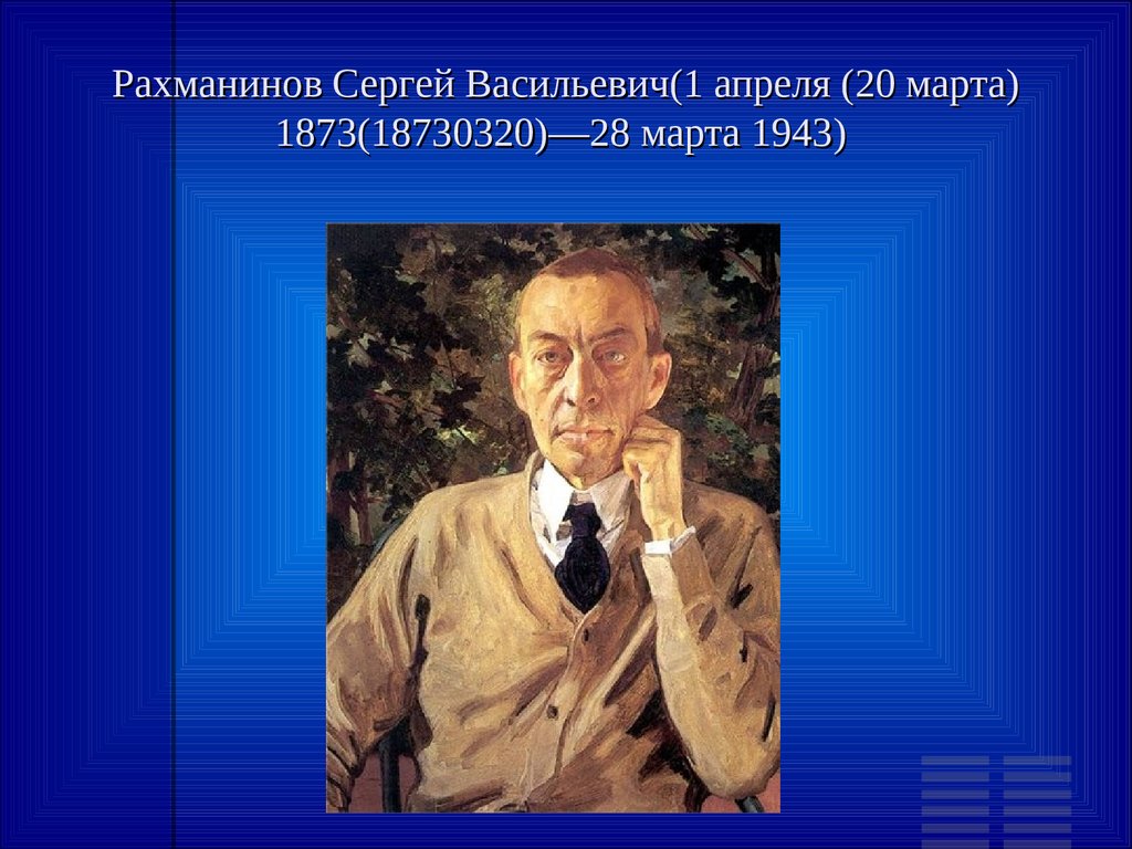 Рахманинов Сергей Васильевич(1 апреля (20 марта)1873(18730320)—28 марта 1943)