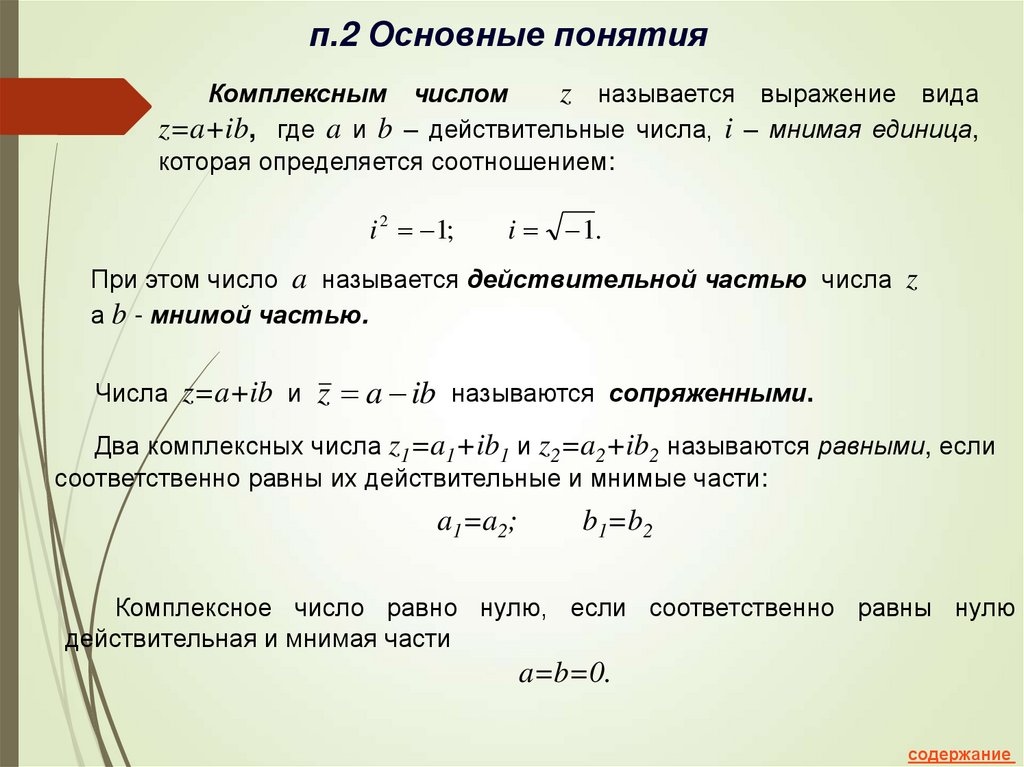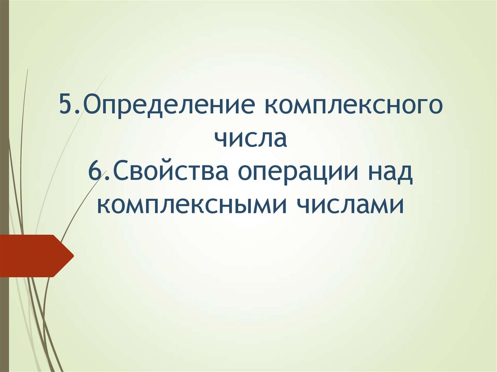 Определение комплексного числа. Свойства операции над комплексными числами. Темы 5-6